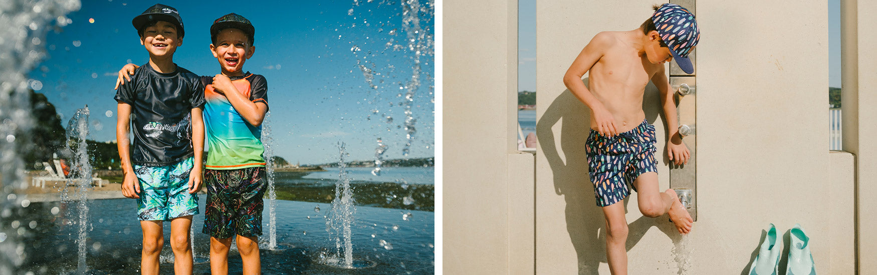 Our swimsuits for little boys are offered in a wide range of colours and designs that kids will love. If you want your child to look even cuter, be sure to discover our collections of caps and other accessories with matching designs!