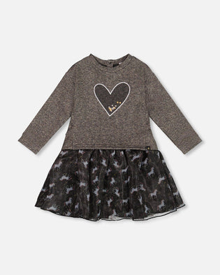 The Knitted Dress in Dusty Pink With Unicorn Intarsia brings charm and softness to any fall wardrobe. Made from a cozy knit blend, this sweater dress features long raglan sleeves in a textured knit, a large jacquard unicorn with glittery details on the chest, ribbed trims, and delicate ruffles at the bottom hem for extra flair. Its easy pull-on fit makes this dress perfect for school days, weekend fun, and everything in between.