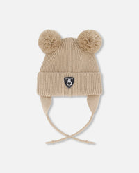 Lined Baby Knit Hat With Pompoms Chanterelle