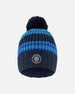 Featuring a chunky knit texture and horizontal stripes, this beanie hat offers essential protection for little ones on cold winter days. Lined with polar fleece for added warmth, this hat features a rib knit hem, a large pompom on top, and a logo patch for brand distinction.