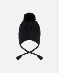 Lined Winter Hat With Pompom Black