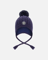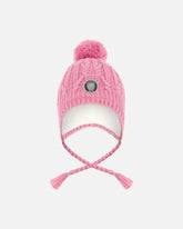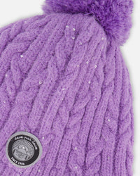 Lined with polar fleece for added warmth, this knit cap in lavender is winter weather-approved. In a Peruvian silhouette with extended side panels that cover and protect the ears, this winter hat features a chunky cable knit texture, braided side tassels, a fluffy pompom, and a logo patch for brand distinction.