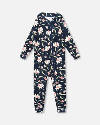 It's essential to be comfortable when wearing a snowsuit, so we've designed this one-piece base layer in super soft and thick brushed jersey to keep little ones warm yet able to move freely. Our thermal underwear jumpsuit in navy flower print features long raglan sleeves, a round neckline, and an asymmetrical zipper closure.