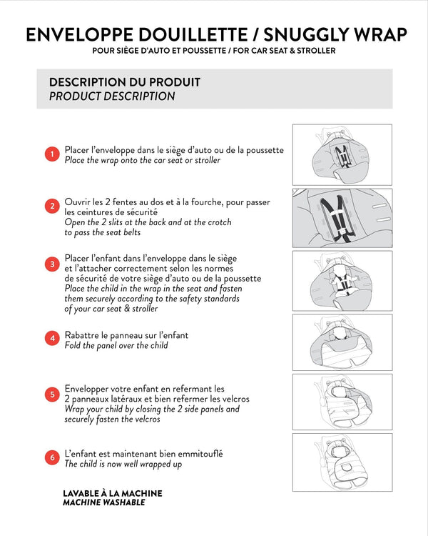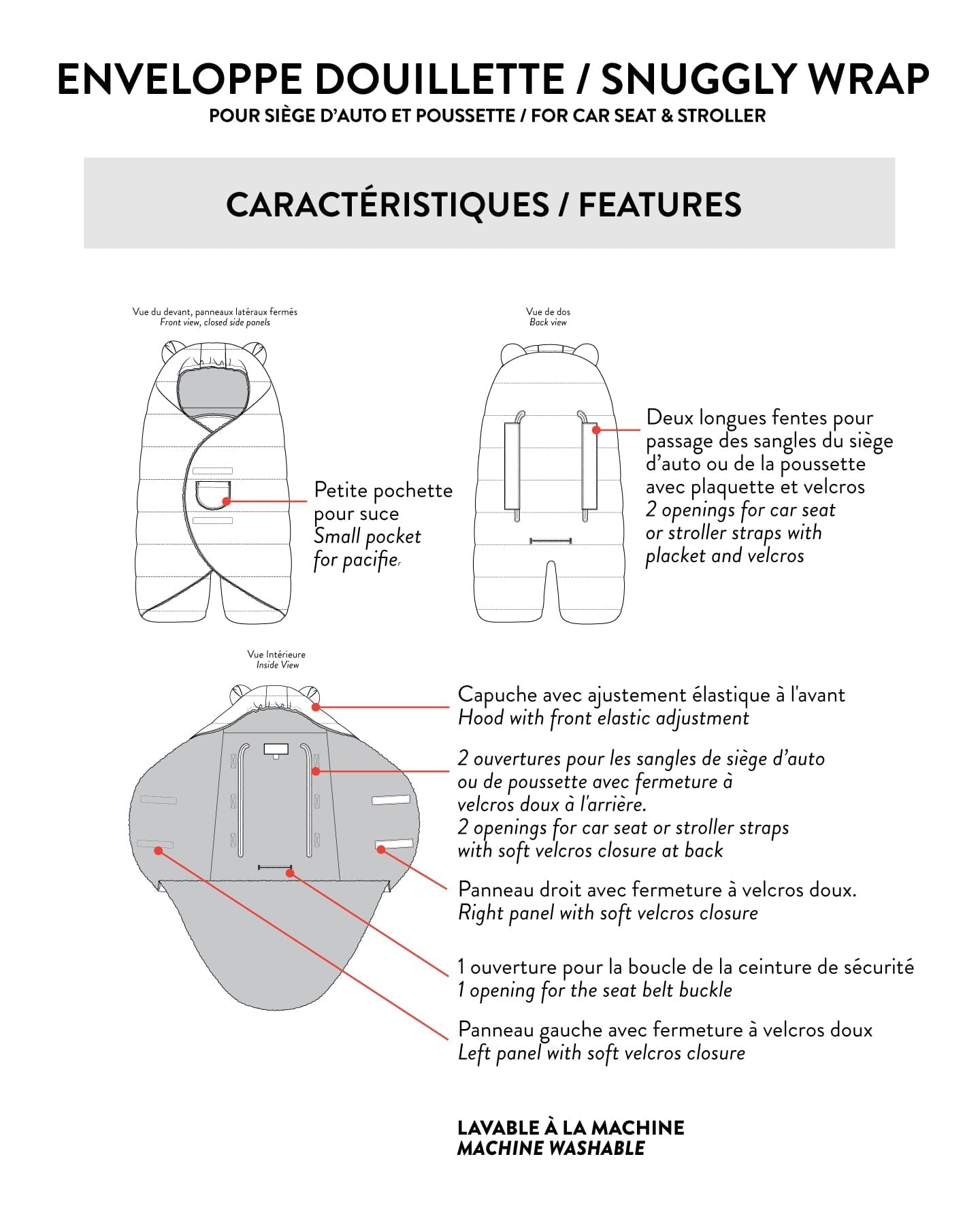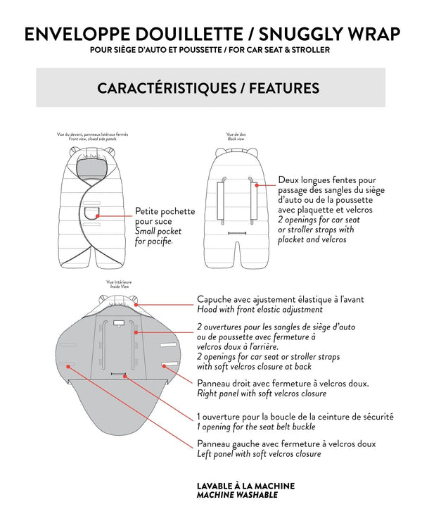 Car seat and stroller compatible: Side openings with velcro flaps to insert car seat or stroller harness straps