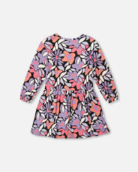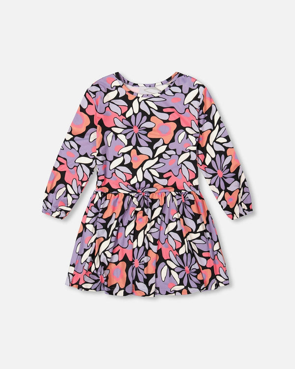 Robe en jersey noir imprimé fleurs rétro