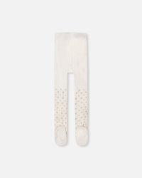 Collants en tricot blanc cassé avec motif d'étoiles dorées