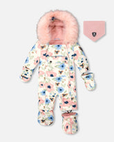 Combinaison de neige BABY PLAY conçue pour siège d’auto rose imprimé fleurs aquarelles