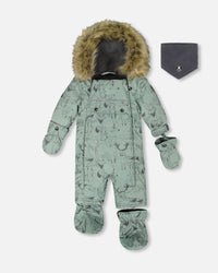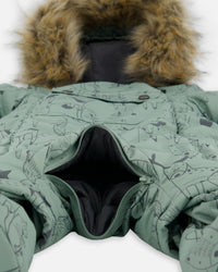Combinaison de neige BABY PLAY conçue pour siège d’auto sauge imprimé animaux
