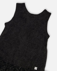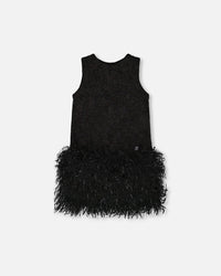 Robe bi-matière sans manches en lurex avec jupe à plumes noir