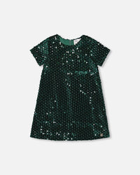 Robe manches courtes en velours vert forêt