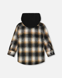 Chemise en polaire à capuchon noir, bleu et blanc cassé