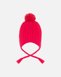 Bonnet d’hiver doublé avec pompon corail éclatant
