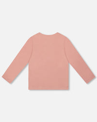T-shirt manches longues en coton biologique vieux rose avec licorne en paillettes