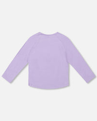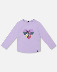 T-shirt manches longues en coton biologique lavande avec licorne en paillettes