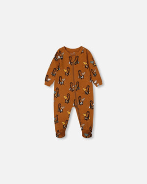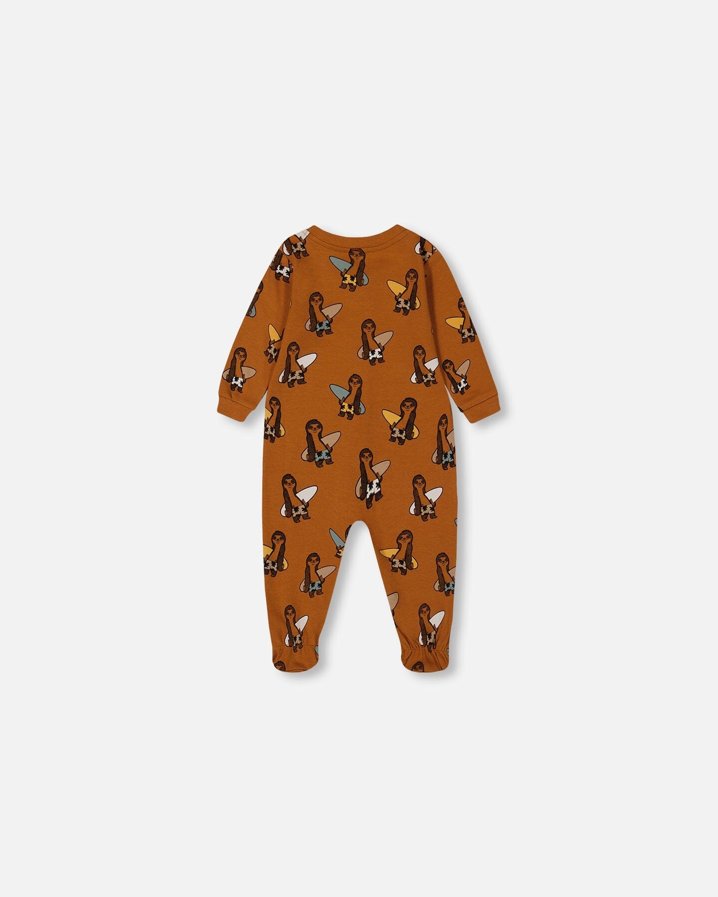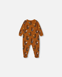 Pyjama une pièce imprimé avec paresseux sur fond tan en coton biologique
