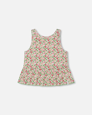 Camisole avec volants imprimée à petites fleurs sur fond blanc