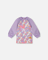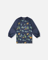 Tablier scolaire dégradé bleu imprimé dinosaures