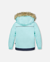 Capuchon détachable et ajustable à l’arrière de la tête avec fourrure synthétique amovible et pare-neige au contour du capuchon (OU si pas de fourrure : capuchon détachable et ajustable aux contours et à l’arrière de la tête)