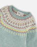Our Jacquard Sweater Dress With Ribbed Skirt in Jade Green is a cozy statement piece with playful flair. This girly sweater dress features an intricate jacquard floral yoke, tiny flower motifs at the cuffs and hem, and a wide pleated skirt in ribbed knit for extra movement. Made from a soft stretch knit, it’s perfect for chilly days with leggings or tights from our "Frost Flowers" collection.