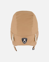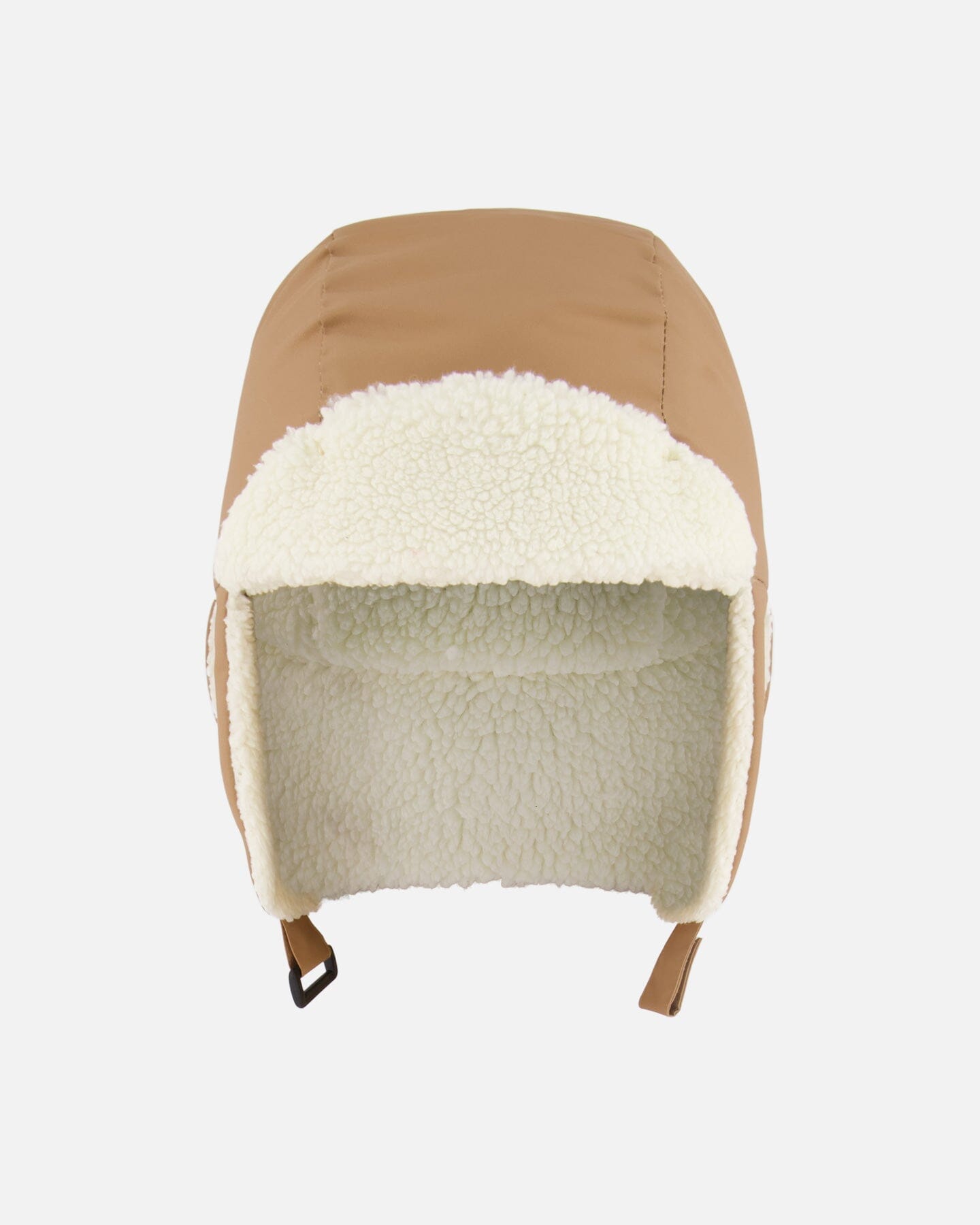 Made for the coldest days of the year, this winter hat for babies fully protects little heads, ears, and cheeks. Lined with sherpa fabric that makes it ultra-warm, this chapka features ear flaps that cover the cheeks, a strap that attaches under the chin, and a small logo patch in back.