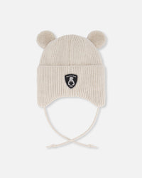 Lined Baby Winter Knit Hat With Ear Flaps Off-White