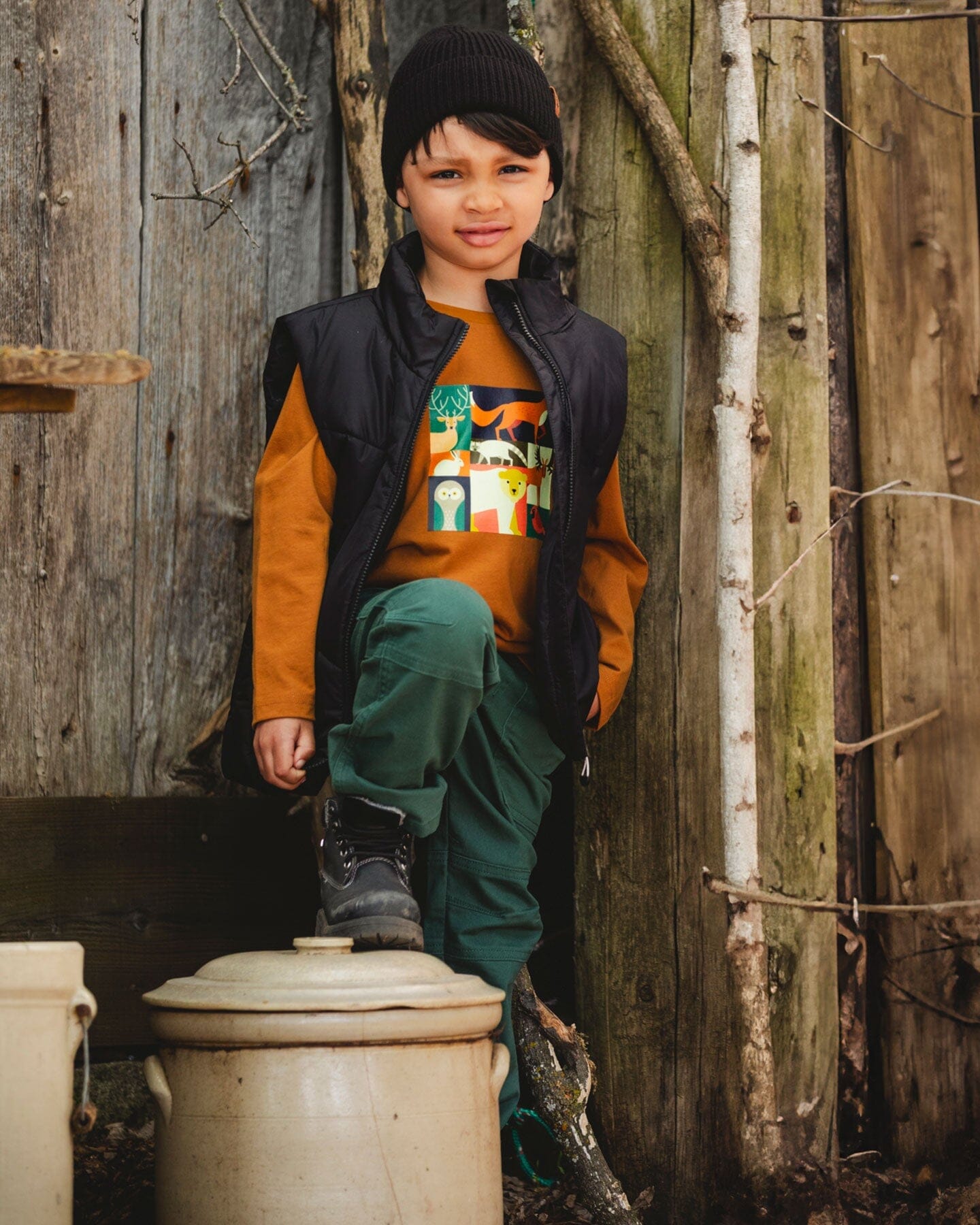 A collage of woodland animals makes this top perfect for the boy who loves the great outdoors. In ultra-soft cotton jersey fabric, this long sleeve tee features a crew neckline, a small logo label at the hem, and a large chest graphic with a distinctive animal print.