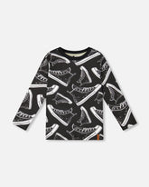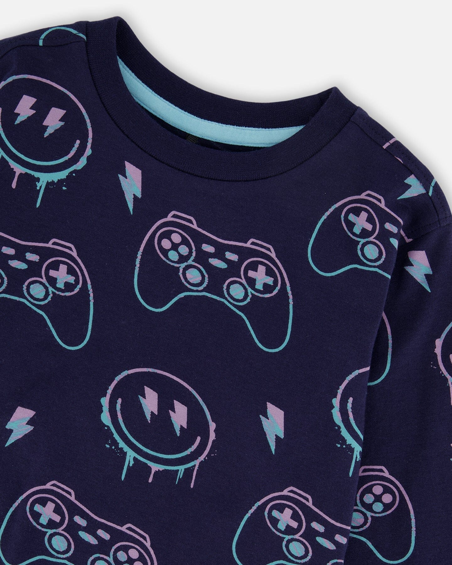 Video game controllers, smiley faces, and multicolor lightning bolts make this top a must-have for the boy with an edgy sense of style. In ultra-soft organic cotton jersey, this tee features long sleeves, a comfortable crew neckline, and a bold allover print with a small logo label at the hem.