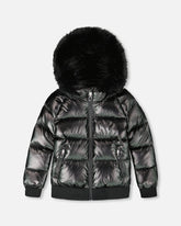 Insulated for warmth in temperatures as low as -30°C (-22°F), this puffer jacket is loaded with features to protect little ones on the coldest winter days. A wind flap, chin guard, and snow guard around the hood keep the cold out, while a fleece lining in the jacket, collar, and hood keep the warmth in. Removable faux fur trim around the hood offers an additional layer of cold-weather comfort.