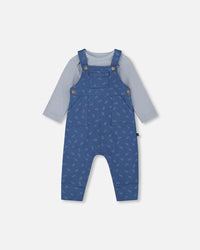 Organic Cotton Onesie And Overalls Set Blue Leaf Print