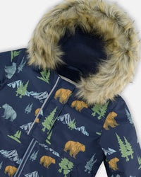 Designed to keep baby warm in frigid weather. This cold weather suit in blue gray is waterproof, abrasion-resistant, and dirt-repellent, offering long-lasting durability in a breathable silhouette that provides cold protection down to -30°C (-22°F). The fleece-lined jacket features a wind flap, chin guard, adjustable waist, and elasticized cuffs. The high-waisted pant features a fleece-lined bib, snow guards, and adjustable rubber straps to hold boots in place. Removable mitts and booties provide added warmth, coverage, and cold weather protection.