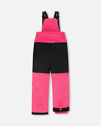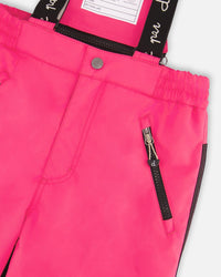 Pants with elastic waist and removable, adjustable suspenders. Includes 2 zippered side pockets. Ankles with snow guards and rubberized elastic band.