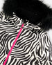 Waterproof, breathable, and insulated for cold protection down to -30°C (-22°F), our two-piece PLAY ski suit in fuchsia with a zebra print jacket is designed for maximum comfort, warmth, and performance in the snow. This winter snowsuit features a fleece-lined jacket with a detachable and adjustable hood, articulated sleeves for improved range of motion, elastic cuffs, a snow skirt, expandable sleeves so you can adjust the length as the child grows, and a protective wind flap and chin guard. The pants are constructed with Cordura®-reinforced panels for long-lasting durability, articulated knees, adjustable and removable suspender straps, ankle snow guards, and zippered pockets to hold ski passes and other essentials.