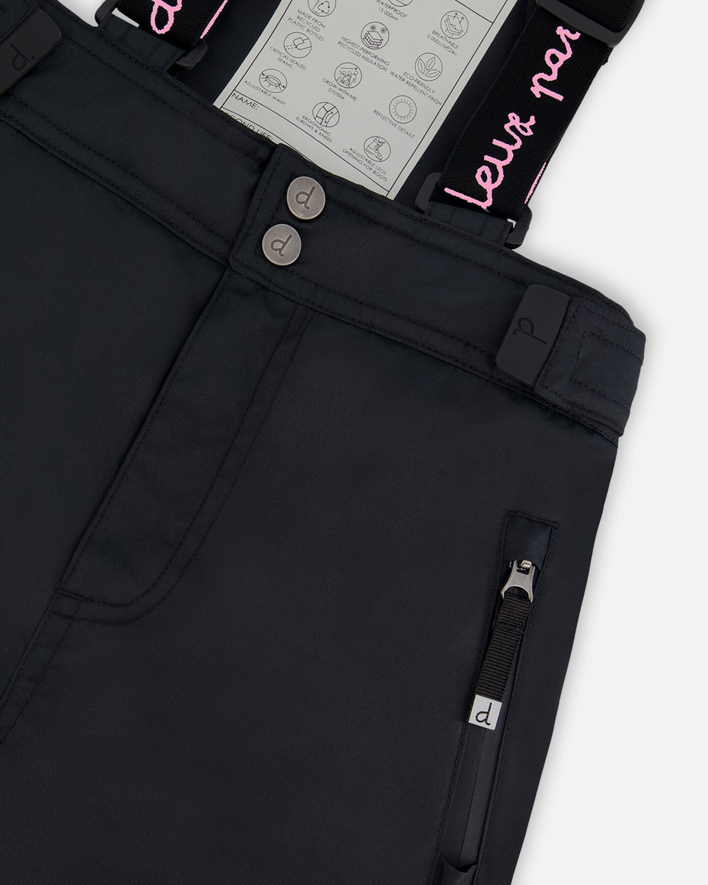 Adjustable elastic waistband with Velcro® and removable, adjustable suspenders. Includes 2 zippered pockets on each side.