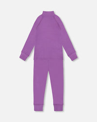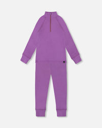 Designed to provide increased warmth and excellent range of motion beneath a snowsuit, these base layers are essential for skiing, snowboarding, and other cold weather sports. This two-piece thermal underwear set is made from thick brushed jersey with a super soft finish and ultra-comfortable feel. In solid lavender, this set includes a long raglan sleeve top with a half zip neckline and a pull-on pant with a stretchy elastic waist.